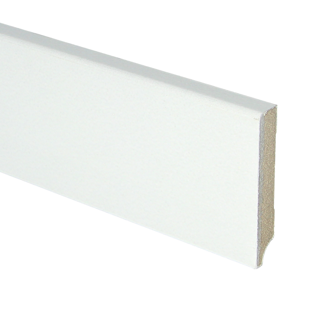 Mooie MDF plint met afmeting 12 mm dik en 70 mm hoog.
