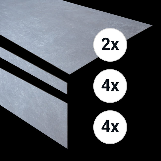 Handige set bestaande uit 2x PVC slab (45,7 x 152,4 cm), 4x PVC strook (4 x 152,4 cm) en 4x PVC stootbord (18 x 152,4).