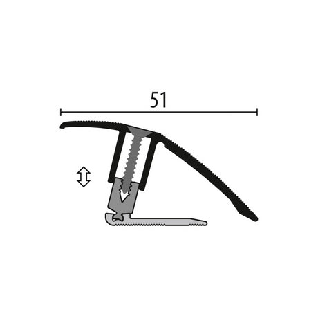 Overgangsprofiel zelfkliel 14 mm alu zwart, 270cm lang