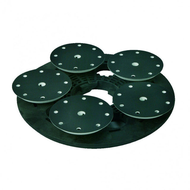 De Woodboy aandrijfschijf parket 5E is speciaal ontwikkeld om vloeren te schuren. Door de vijf losse schijven, die wordt aangedreven op een vaste schijf, worden de krassen tot een minimum beperkt. De schuurschijf blijft makkelijk plakken door middel van het velcro klittenband. Daarnaast heeft de Woodboy een stofring met een afzuigsysteem erop. Daardoor wordt het schuren heel eenvoudig en het stof goed afgezogen. De aandrijfschijf is speciaal voor de Woodboy 4000 machine 16 inch ontwikkeld.