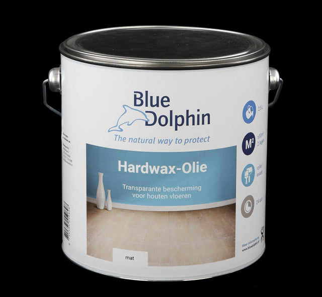 Blue Dolphin Mat hardwax-olie geeft het hout een zeer matte en natuurlijke uitstraling, de ‘onbehandelde look’. Deze olie bestaat hoofdzakelijk uit natuurlijke grondstoffen. De olie is geschikt voor de meeste houten oppervlakten met aanzuigend vermogen in binnenruimtes. Zoals houtenvloeren, parket, triplex- en OSB-platen en kurk. Wij raden aan om het product voor gebruik goed te schudden en roeren en eerst te testen op een proefstuk. Deze natuurlijke hardwax dient 2 lagen te worden gepoetst.